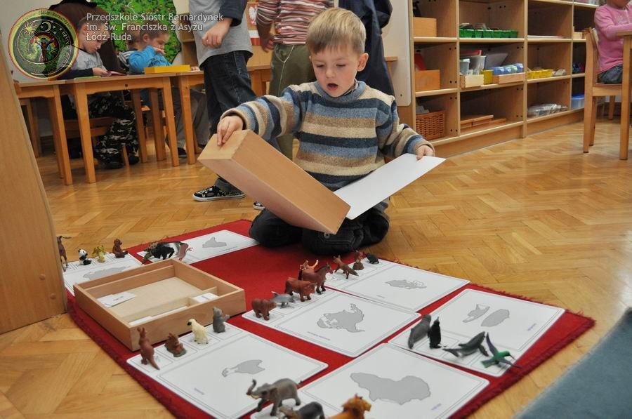 Dzień pracy w Przedszkolu im. św. Franciszka z Asyżu rozpoczyna się o godz. 7.20. W tym czasie dzieci pracują z pomocami indywidualnie lub w małych grupkach. To także czas na przywitanie się, krótki kontakt indywidualny - czas integracji. Na dźwięk pozytywki dzieci zostawiają wizytówkę przy wykonywanej pracy i udają się do łazienki, by odbyć poranną toaletę, po czym siadają w kręgu. O godz. 8.50 wszystkie grupy spotykają się na wspólnym śniadaniu w jadalni. Posiłek poprzedza krótka modlitwa. Po śniadaniu dzieci wracają do swoich sal, w łazienkach myją zęby i nadchodzi czas na wspólnotową codzienną modlitwę w kąciku religijnym. Po modlitwie dzieci gromadzą się w kręgu, gdzie prowadzone są zajęcia dla wszystkich (katechezy, zajęcia tematyczne, śpiew piosenek, ćwiczenia ciszy, prezentacje pomocy, urodziny bądź imieniny). Następnie, każde dziecko ma możliwość zaplanowania swojej pracy. Nauczycielka zapisuje propozycje dzieci. Dzięki temu dzieci uczą się świadomości swych działań i odpowiedzialności za wypowiadane słowa. Następuje praca wolna. W tym czasie dzieci rozkładają na podłodze różnokolorowe prostokątne dywaniki na których pracują z pomocami montessoriańskimi. Około godz. 11.30 znów rozbrzmiewają dźwięki pozytywki. Znaczy to iż należy sprzątnąć lub uporządkować swoją pracę pozostawiając jednocześnie wizytówką i przygotować się do obiadu