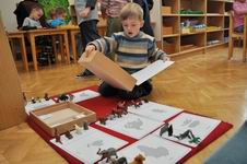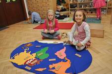 O godz. 11.45 wszystkie dzieci spotykają się w jadalni na obiedzie. Dzieci same nakładają sobie posiłki i odnoszą naczynia. Po obiedzie schodzą grupy do swoich sal, gdzie kolejny raz myją zęby i na krótką chwilę dzieci razem, by ustalić dalszy przebieg dnia. Nauczycielki wychodzą naprzeciw zainteresowaniom dzieci. Ok. godz. 13.00, gdy warunki atmosferyczne na to pozwalają, wszystkie dzieci z siostrami idą na spacer lub wychodzą na plac zabaw, jest to czas przeznaczony na rekreację i zabawę na świeżym powietrzu.